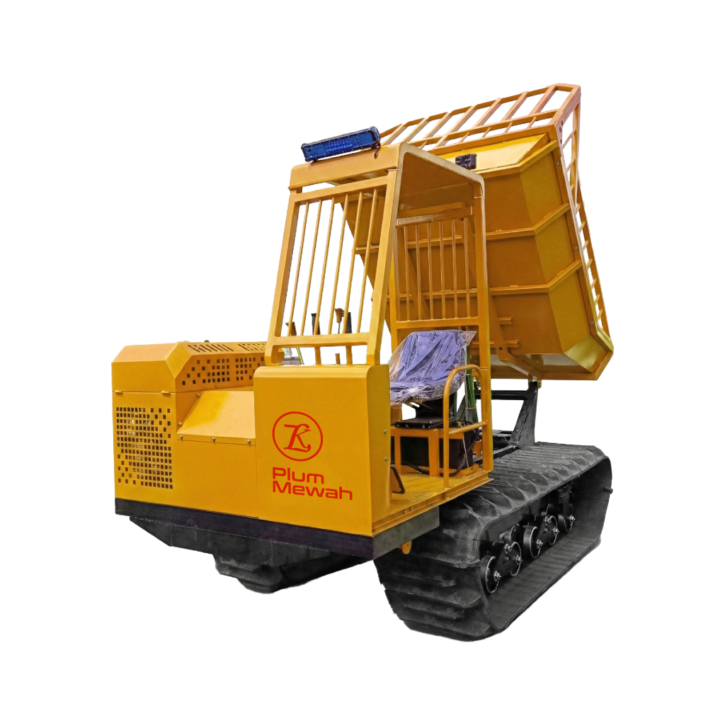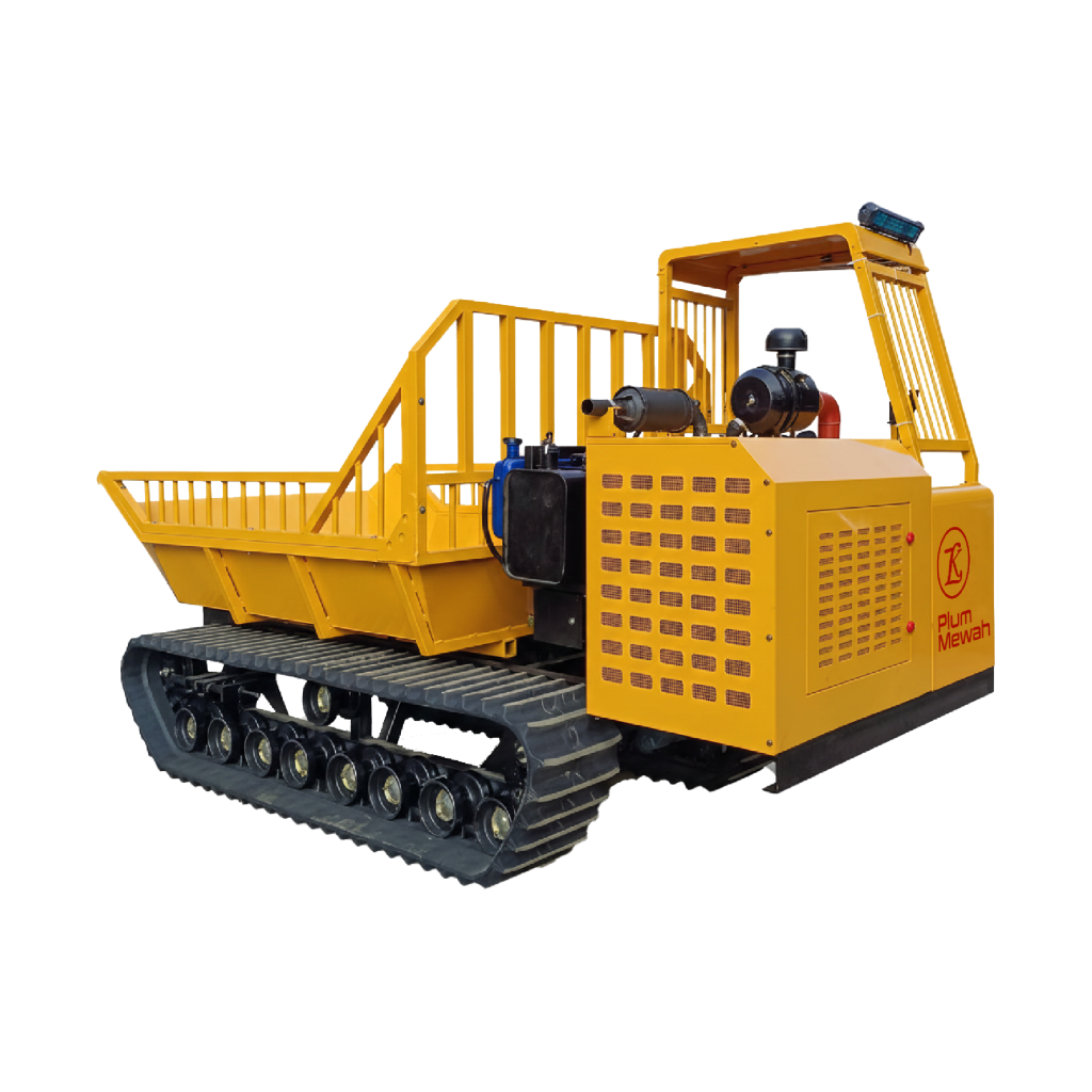 Plum Mewah Indonesia menyediakan crawler dumper untuk mendukung alat angkut panen di kondisi kebun yang menantang. Unit dirancang agar tetap stabil di lahan gambut, jalur basah, dan kontur tanah yang tidak rata, sehingga operasional angkut dapat berjalan konsisten.