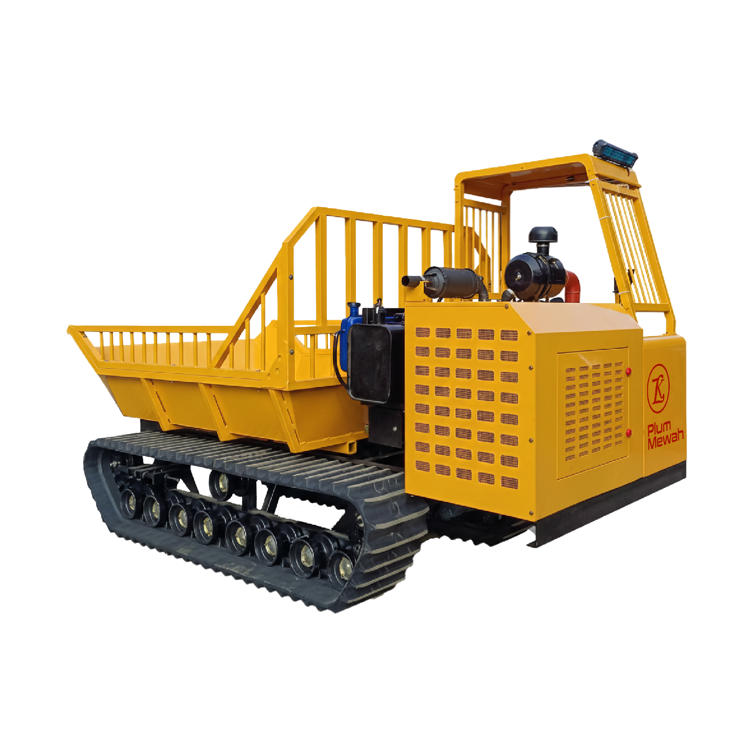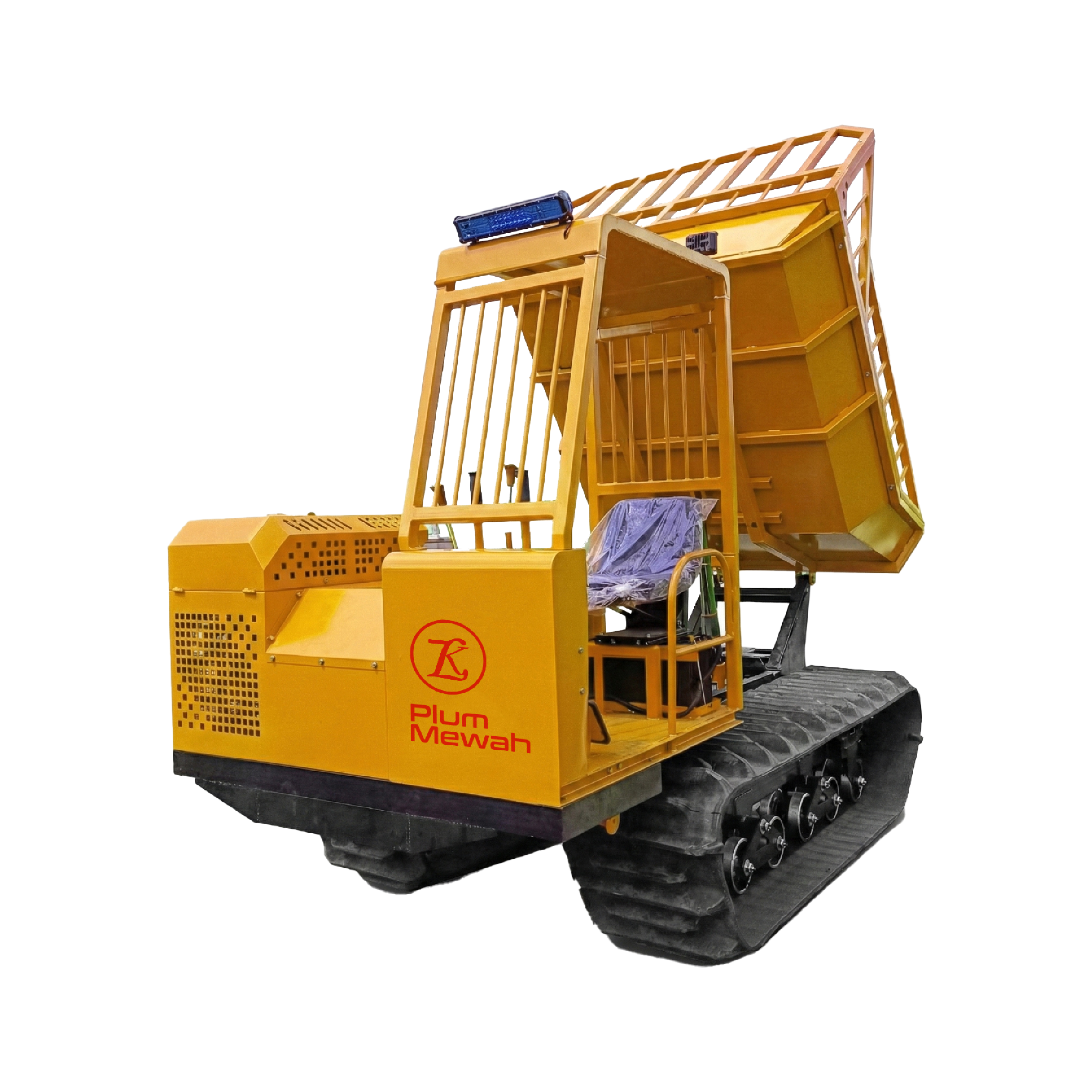 Plum Mewah menghadirkan crawler dumper yang dibangun khusus untuk kebutuhan transportasi TBS di kondisi lapangan yang berat. Dengan desain track bertekanan rendah, rangka baja berkekuatan tinggi, dan sistem hidrolik yang responsif, setiap unit memberikan performa stabil meskipun digunakan pada medan gambut, lumpur dalam, berbukit maupun jalur dengan kontur tidak rata.