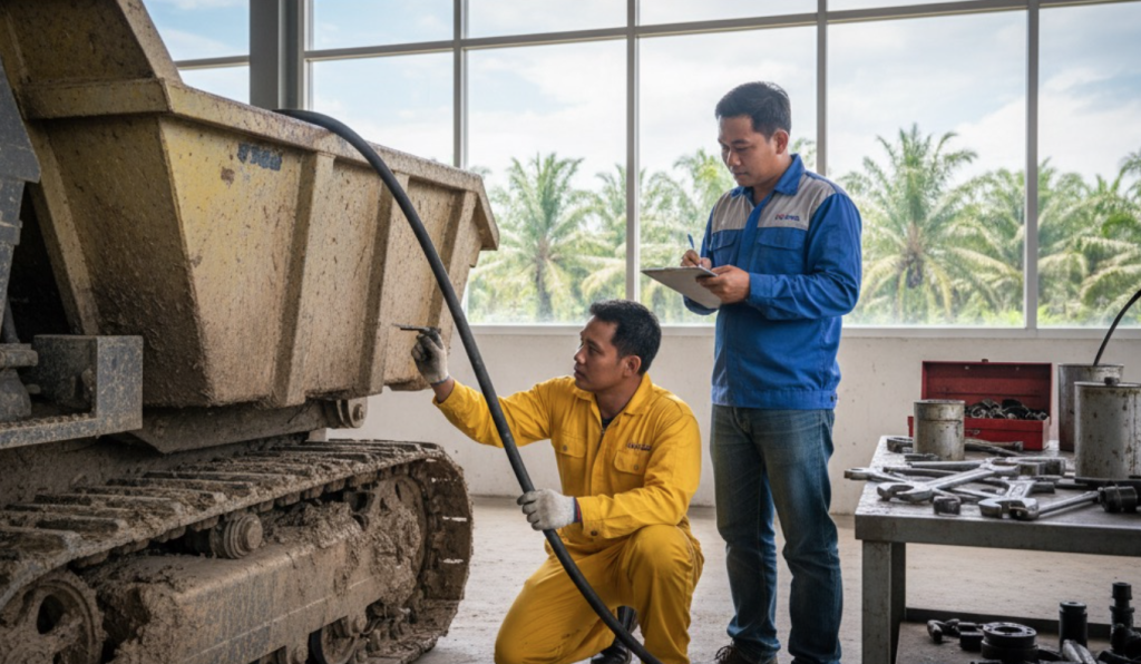 Perkebunan sawit di Indonesia menghadapi tantangan berat setiap hari: jalan berlumpur, beban panen besar, dan cuaca ekstrem. Mengandalkan alat berat seperti crawler dumper tanpa perawatan yang tepat bisa menyebabkan downtime, biaya perbaikan tinggi, dan keterlambatan panen.